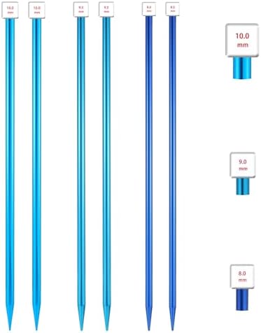 Complete Knitting Set – You’ll receive 6 knitting needles in total—3 pairs. This aluminum straight knitting needles set ensures you have the right size for various knitting projects, whether you’re crafting scarves, sweaters, or socks. Great for both personal use and sharing with friends or family. Versatile Size Options – This aluminum metal knitting needle set includes 3 sizes: 8 mm, 9 mm, and 10 mm, giving you the flexibility to choose the ideal needle size based on your project. Perfect for a wide range of knitting tasks from scarves to blankets. Durable and Lightweight – Crafted from high-quality aluminum, these rainbow colorful knitting needles are both strong and lightweight. They resist rust and corrosion, ensuring a smooth knitting experience without worrying about breakage or deformation over time. Comfortable and Easy to Use – Designed with smooth, ergonomic surfaces, these single point knitting needles are comfortable to hold for extended knitting sessions. They reduce wrist strain and make knitting faster and more enjoyable for both beginners and experienced knitters. Ideal for Various Projects – These long straight aluminum knitting needles are perfect for creating a wide array of knitted items like scarves, blankets, hats, and more. Whether you’re a novice or an expert, these needles provide the versatility and durability you need for all your knitting endeavors.