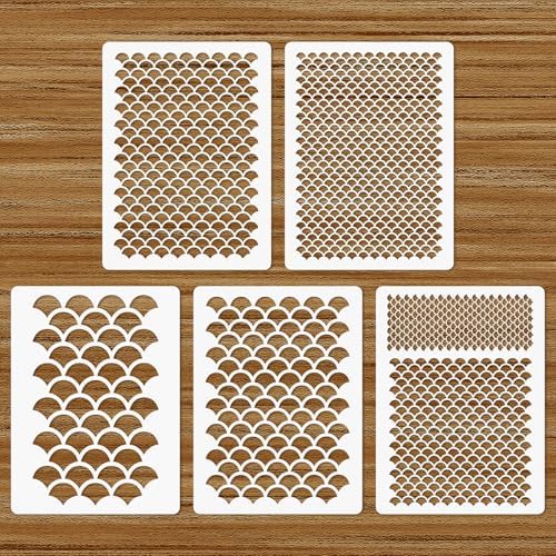 BOHUIZ Fish Scale Stencil for Painting Makeup, 5Pcs Reusable Face Painting Stencils DIY Art Painting Templates for Painting, Crafts, Wall Furniture
