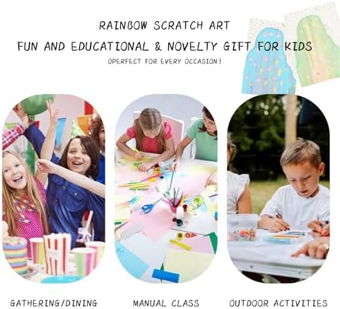EGOBUY Rainbow Scratch Art for Kids, Abstract Dot Painting Art Kit, DIY Rainbow Scratch Paper Set, Rainbow Pointillism Scratch Notebook Crafts, Favors DIY Postcard Gifts for Girls and Boys (C)