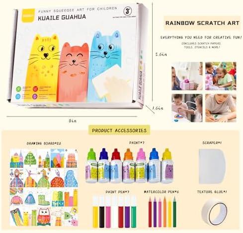 【Interactive DIY Rainbow Scratch Art】Complete stunning artwork with a simple process of dotting, painting, and scraping—truly incredible and easy! Stickers add a perfect finishing touch, making your artwork more vibrant and complete.