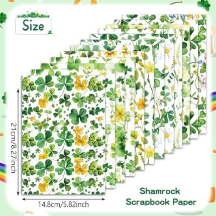 60 Sheets Watercolor Shamrock Scrapbook Paper St. Patrick’s Day Scrapbook Specialty Paper Double Sided Craft Paper for DIY Card Making Photo Album Journal Decor, 8.3” x 5.7”